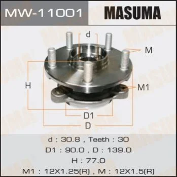 Ступица колеса переднего в сборе с подшипником Toyota Auris (06-15), Avensis (08-15), Corolla (06-13), RAV 4 (05-) MASUMA MW11001 (4355002020)