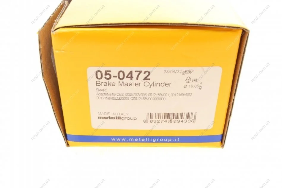 Цилиндр тормозной (главный) Smart Cabrio/Fortwo 00-06 (d=19.05mm) Metelli 05-0472 (0012158V001, 0012158V002, 0005702V005)