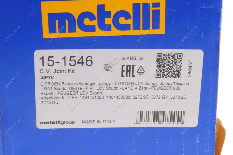 ШРКШ (внешний) Citroen Jumpy/Fiat Scudo/Peugeot Expert 99-06 (27z/39z/58mm/100.3mm/50mm) (+ABS48z) Metelli 15-1546 (32733Q, 3272GY, 32729C)