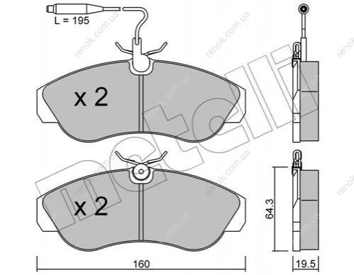 Колодки тормозные (передние) Citroen Jumper 94-/Fiat Ducato/Peugeot Boxer 94-02 R16 (+датчики) Metelli 22-0155-0 (425119, 425452, 425118)