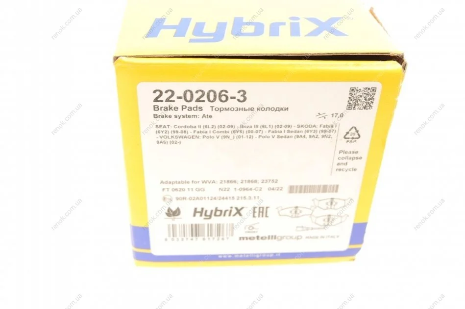 Аналоги "22-0206-3 Metelli":