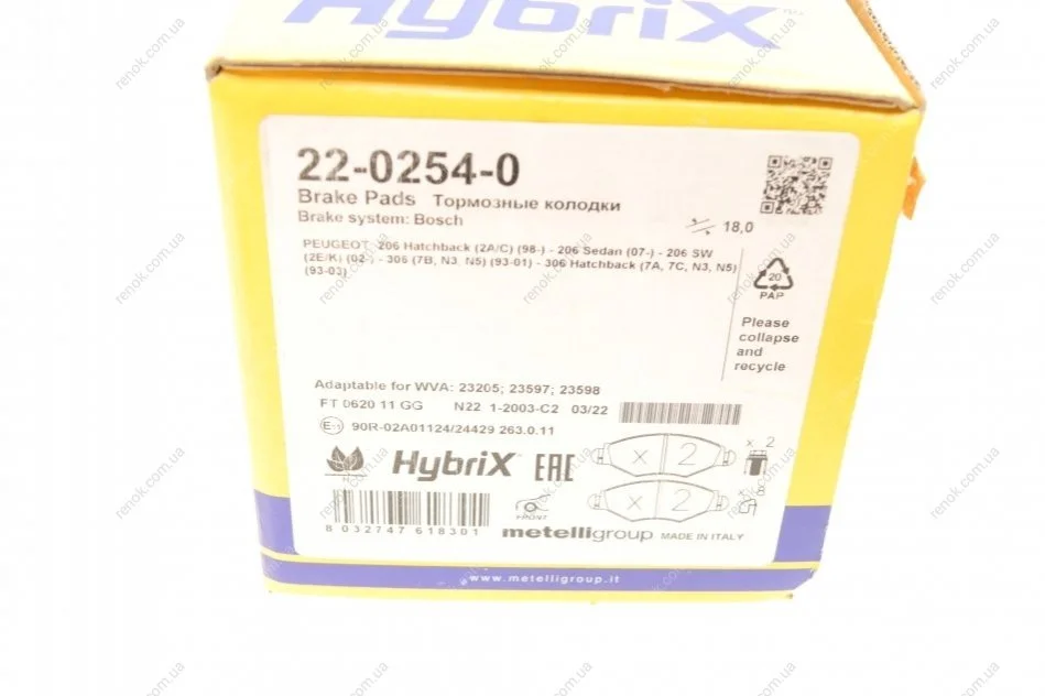 Аналоги "22-0254-0 Metelli":