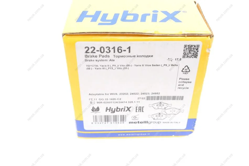 Колодки тормозные (передние) Toyota Yaris 1.0-1.4 05- Metelli 22-0316-1 (04465YZZDS)