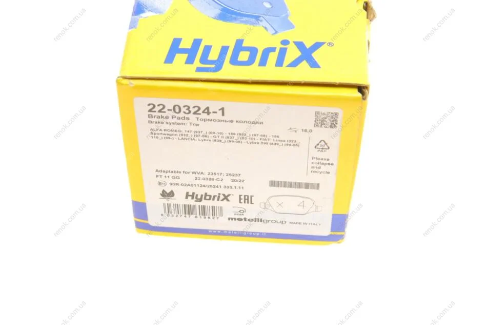Комплект гальмівних колодок Metelli 22-0324-1 (77362276, 77362675, 77363341)