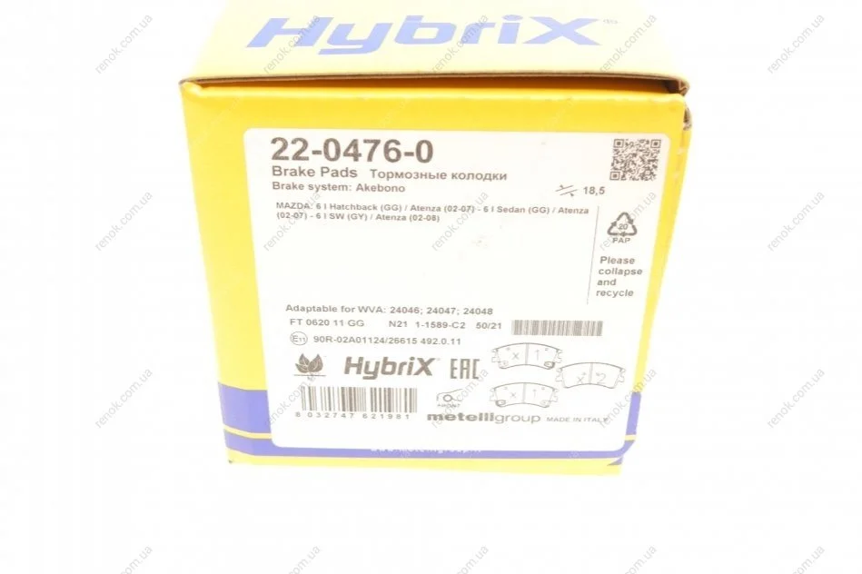 Колодки тормозные (передние) Mazda 6 02-08 Metelli 22-0476-0 (gjye3323zb, gjye3323zc, gjye3328zc)