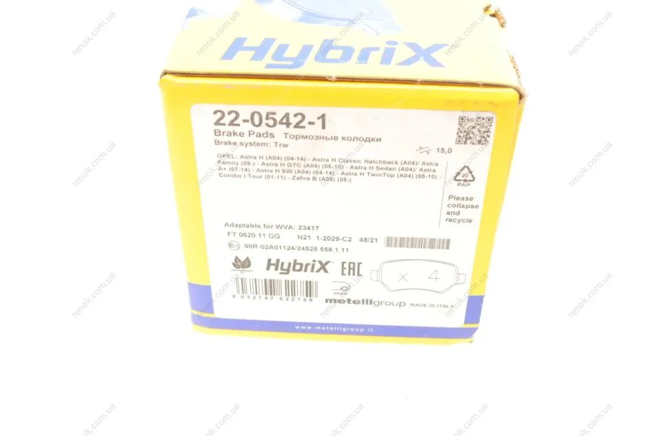 Тормозные колодки (задние) Opel Astra H 04-/Combo 01-/Zafira B 05-15 Metelli 22-0542-1 (1605122, 1605995, 93188727)