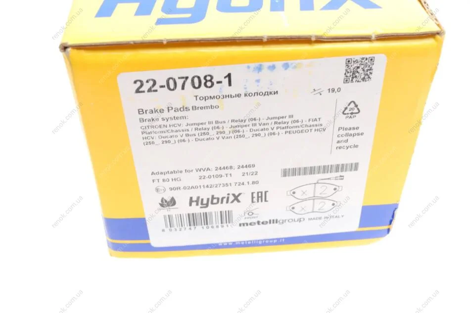 Колодки тормозные (передние) Citroen Jumper/Fiat Ducato/Peugeot Boxer 06- (+датчики) Metelli 22-0708-1 (1611457380, 1612433880, 1623842380)