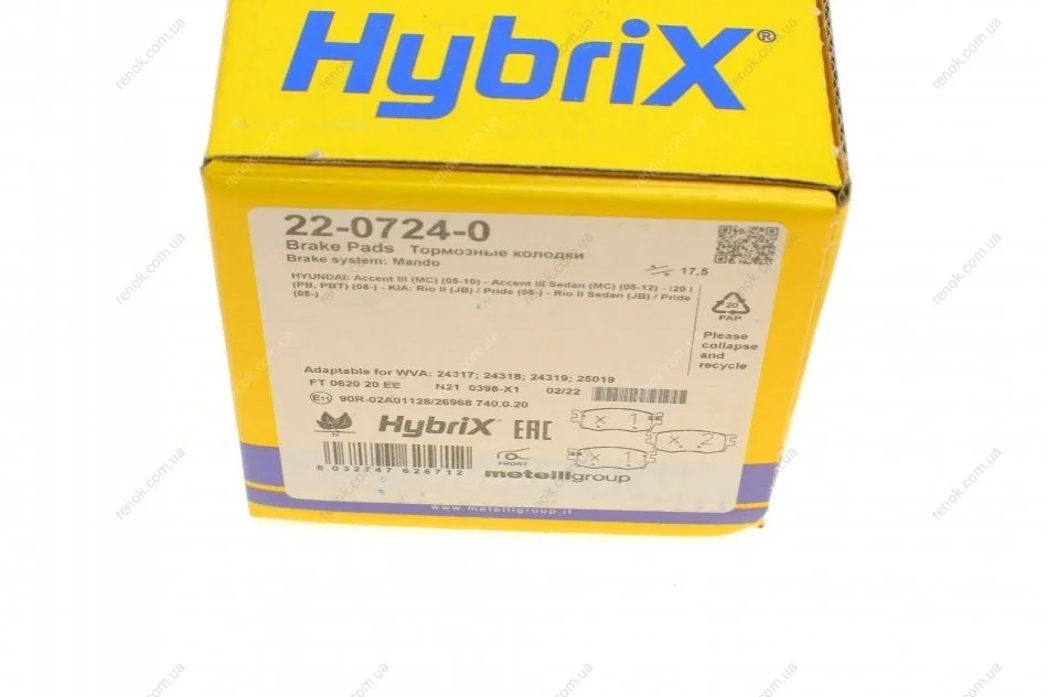 Колодки тормозные (передние) Kia Rio II 05-/Hyundai i20 08-15/Accent 05-10 Metelli 22-0724-0 (581011GA20, AL0041GA00, S581011GE00)