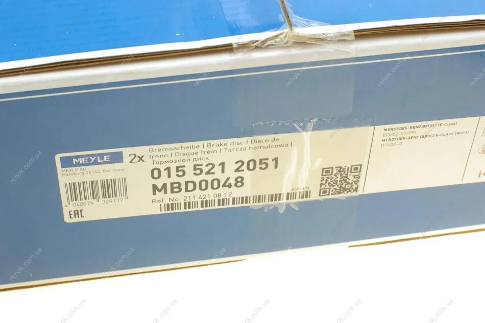Тормозной диск MEYLE 015 521 2051 (a2114210712, A2114210812, 211421081290)