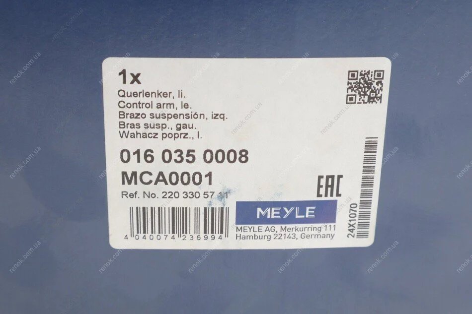 Рычаг подвески MEYLE 016 035 0008 (a2203301811, A2203303311, A2203304311)