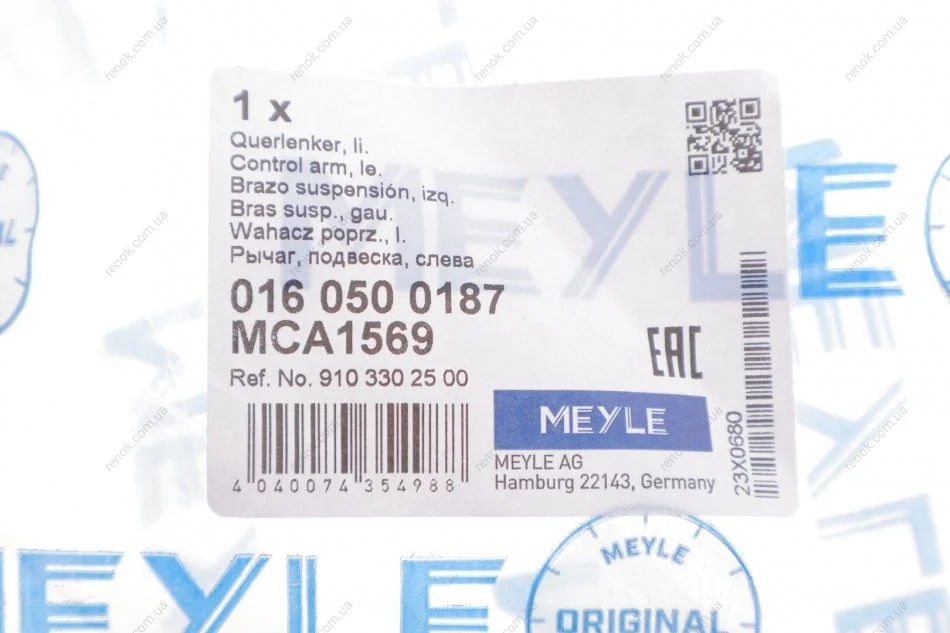 Важіль підвіски MEYLE 016 050 0187 (9103302500, A9103302500)