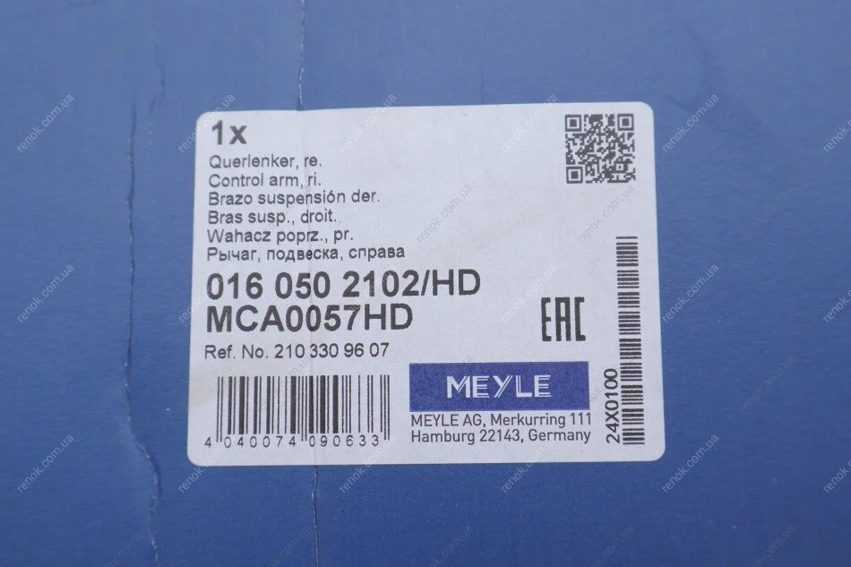 Рычаг подвески (передний/снизу) (R) MB E-class (W210) 95-02 MEYLE 016 050 2102/HD (a2103303507, A2103304507, A2103305607)
