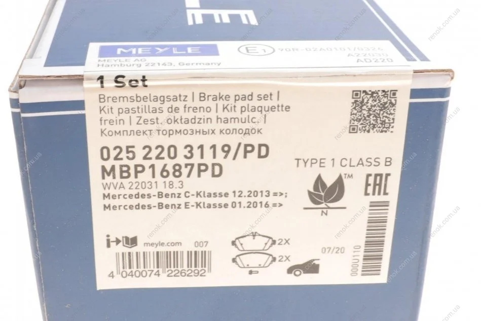 Колодки тормозные (передние) MB C-class (W205/C205)/E-class (W213) 14- MEYLE 025 220 3119/PD (a0084203720, 0084203720)