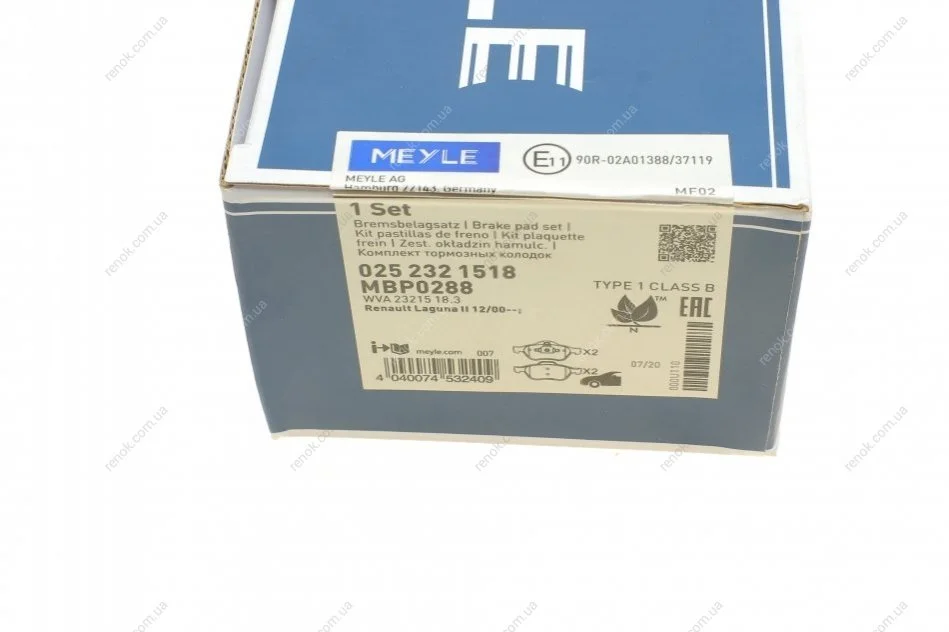 Тормозные колодки дисковые MEYLE 025 232 1518 (7701206598, 7701209808, 410607690R)