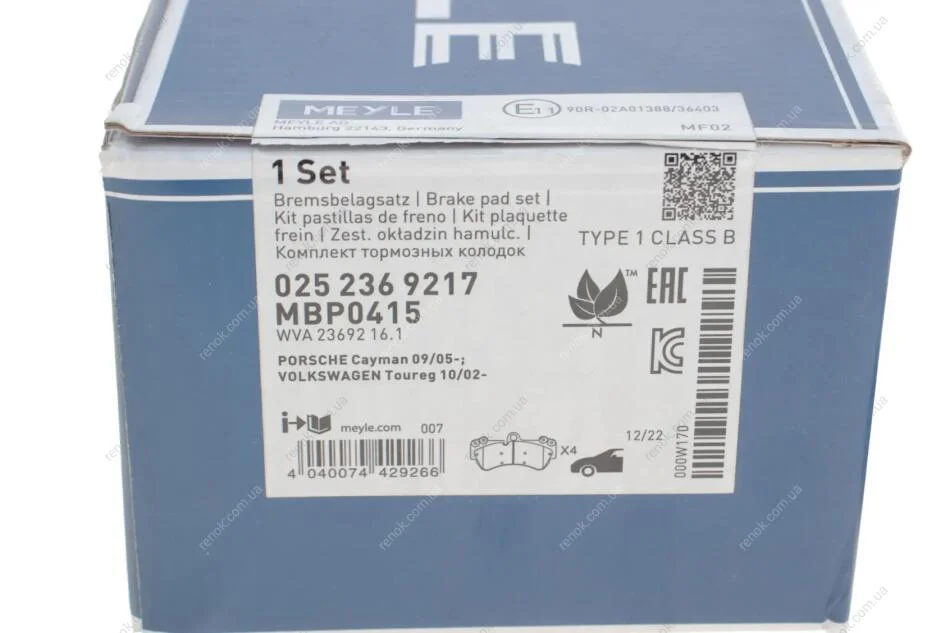 Тормозные колодки дисковые передние VW TOUAREG MEYLE 025 236 9217 (7L0698151, 7L0698151B, 7L0698151D)