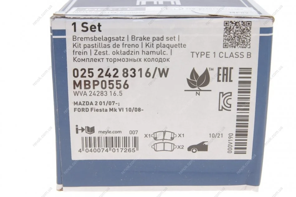 Колодки тормозные (передние) Ford Fiesta 08- MEYLE 025 242 8316/W (04465B1120, 04465B1190, 04465B1191)