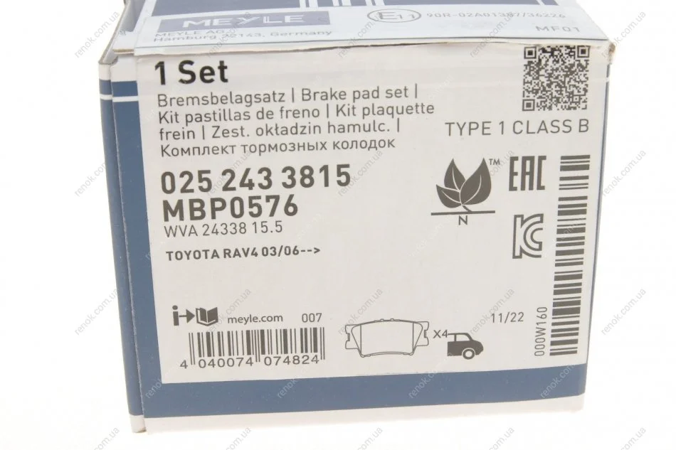 Тормозные колодки дисковые MEYLE 025 243 3815 (0446633160, 0446642060, 04466YZZE8)