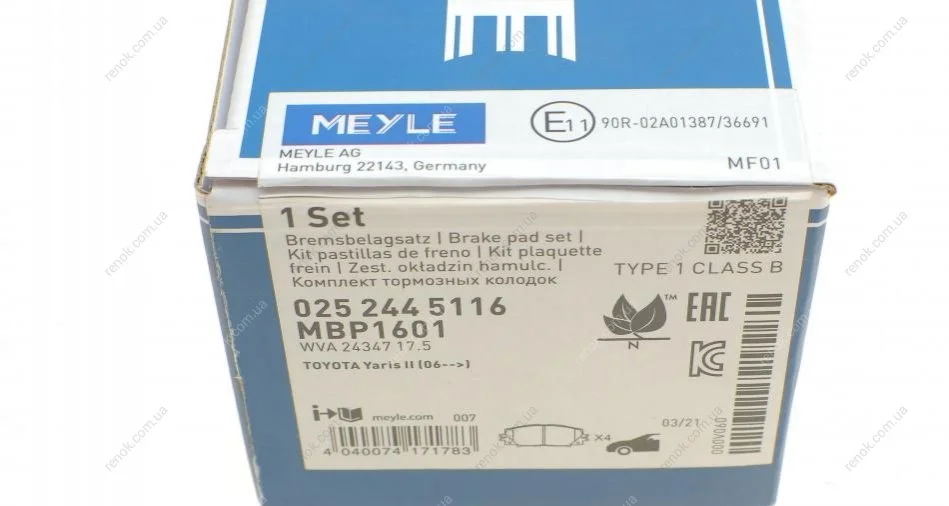 Колодки тормозные MEYLE 025 244 5116 (044650W140, 0446547060, 0446547090)