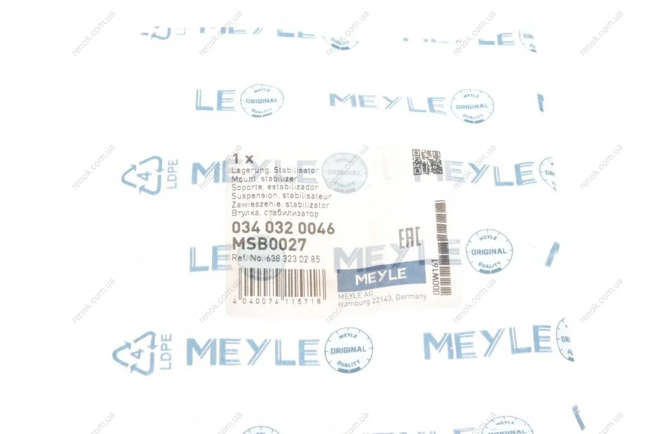 Втулка стабилизатора MERCEDES VITO, V-CLASS 96-03 перед. мост MEYLE 034 032 0046 (a6383230285, 6383230285)