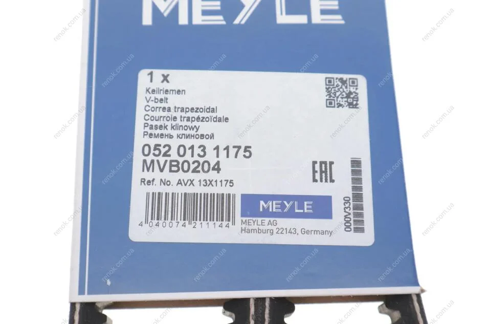 Ремень клиновой 13X1175 MEYLE 052 013 1175 (5000788124, 5000793181, 7700590371)