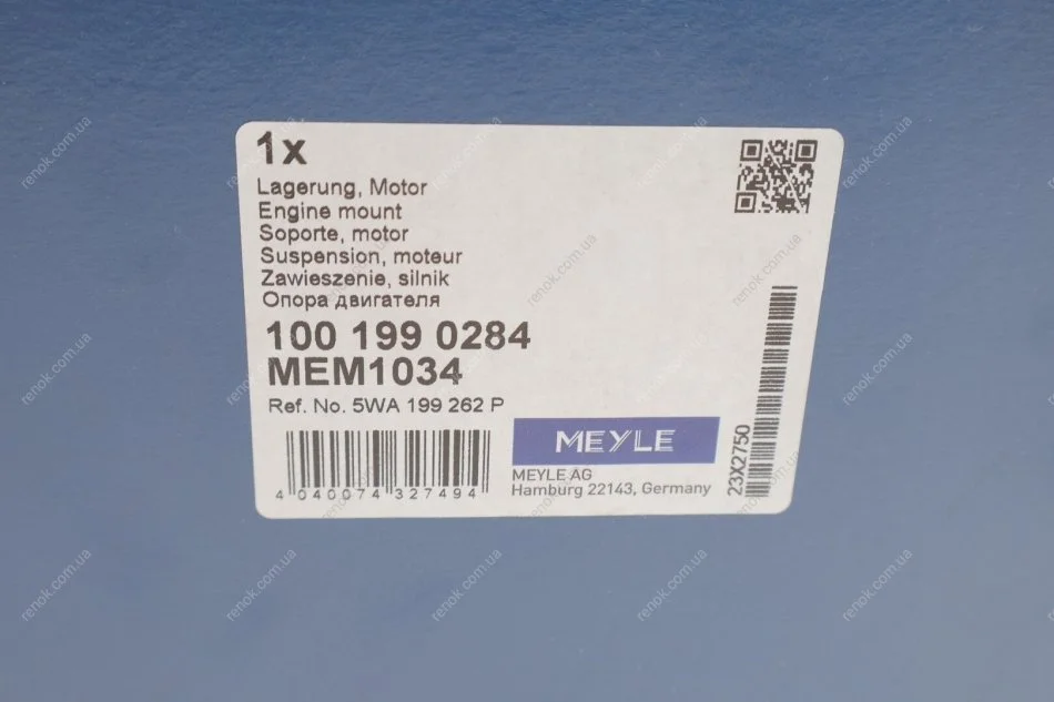 Подушка двигуна MEYLE 100 199 0284