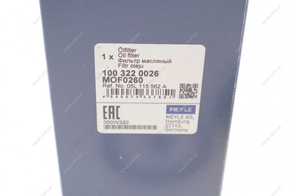 Фильтр масляный VW Caddy V 2.0 TDi BMT 20- MEYLE 100 322 0026