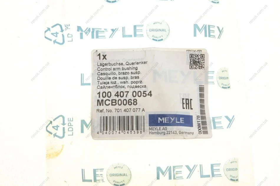 Сайлентблок рычага (переднего/сверху/переди) VW T4 MEYLE 100 407 0054 (701407077, 701407077A)