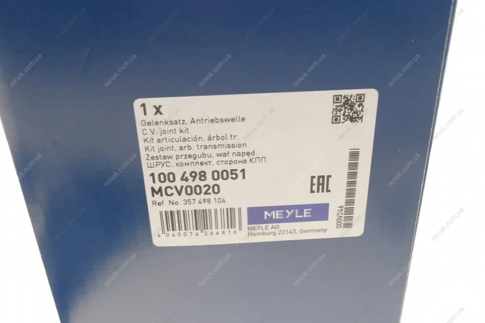 Аналоги "100 498 0051 MEYLE":