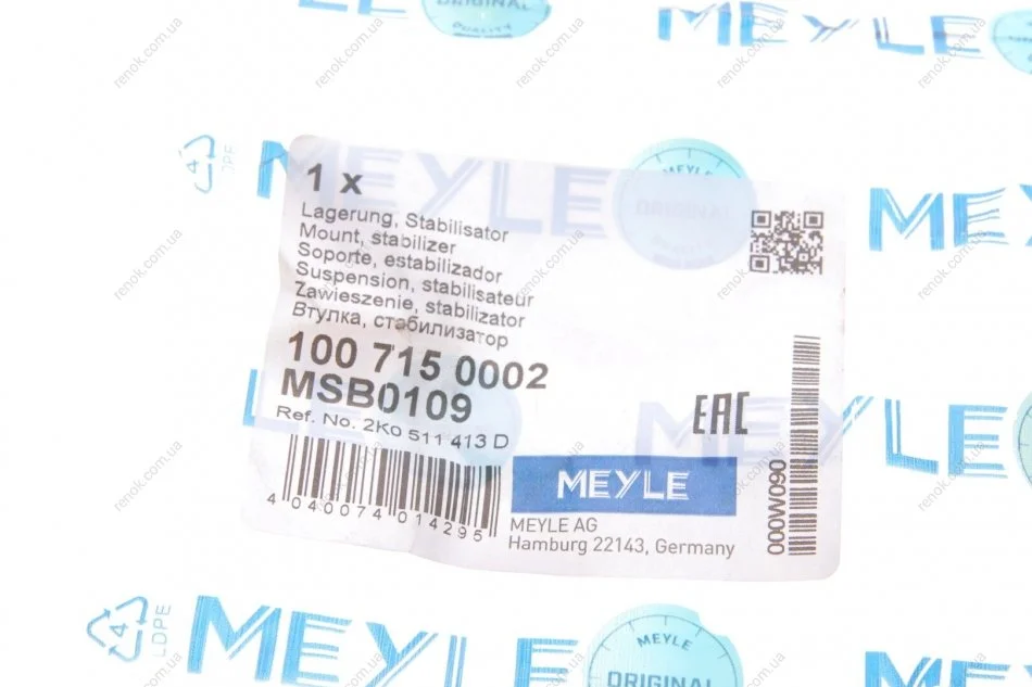 Втулка стабилизатора (заднего) VW Caddy 03-(d=18mm) MEYLE 100 715 0002 (2K0511413A, 2K0511413C)