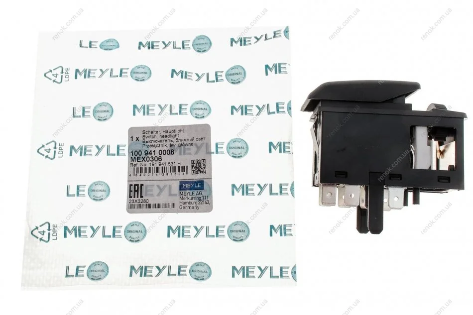 Переключатель света фар VW Golf 83-92 (с регулятором) MEYLE 100 941 0008 (191941531H)
