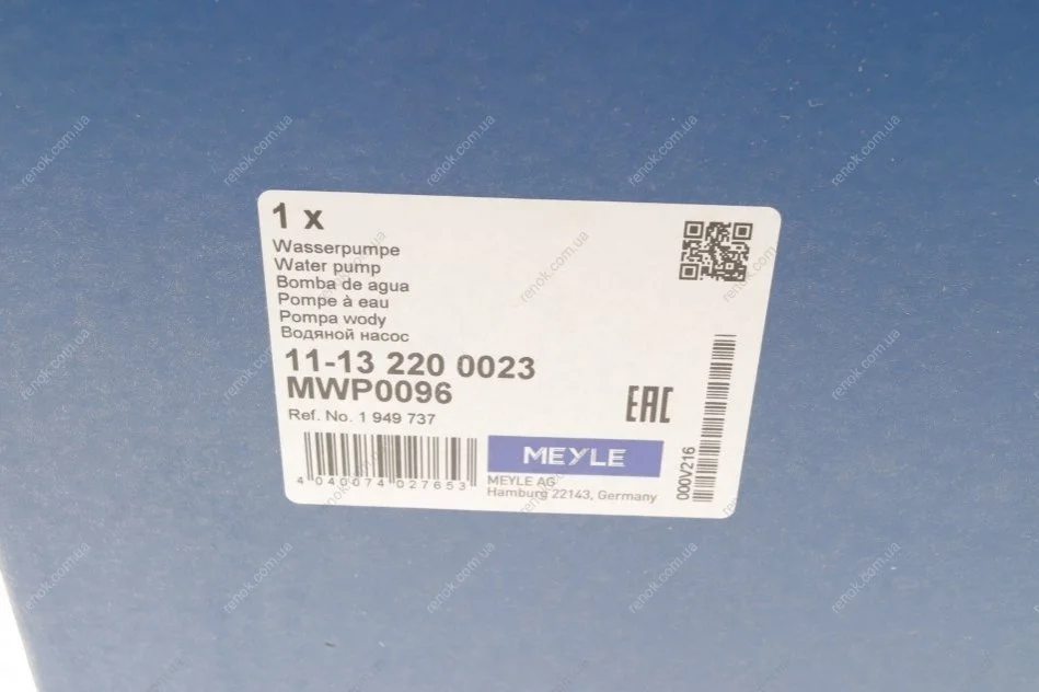 Насос воды Citroen Jumper/Peugeot Boxer 2.2HDI/Fiat Ducato 2.2D/Ford Transit 2.2TDCi 06- MEYLE 11-13 220 0023 (1201H6, 1381796, 1372336)