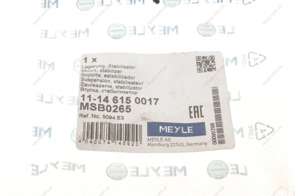 Втулка стабилизатора (переднего) Peugeot Partner 05- (d=24mm) MEYLE 11-14 615 0017 (5094E3, 509489)