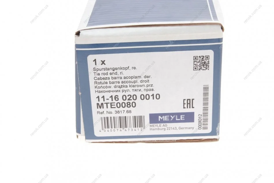 Наконечник рулевой тяги (R) Citroen C3 Picasso 09-/C-Elysse/Peugeot 208/301 12-/Peugeot 207 06-15 MEYLE 11-16 020 0010 (1608652380, 381768, 1610935280)