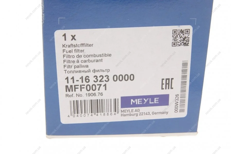 Фильтр топливный Citroen Berlingo/Jumpy/Fiat Scudo/Peugeot Partner 2.0HDi 99- MEYLE 11-16 323 0000 (190677, 190165, 190676)