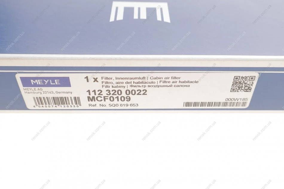 Фильтр салона VW Golf/Passat 14-/Crafter 16-/Skoda Octavia 12-/SuperB 15- (угольный) MEYLE 112 320 0022 (5Q0819653)
