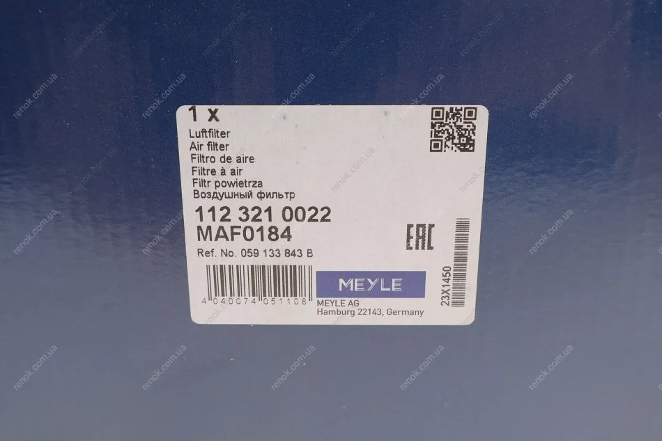 Фильтр воздушный Audi A6 2.7-3.0TDI 04-11 MEYLE 112 321 0022 (059133843B)