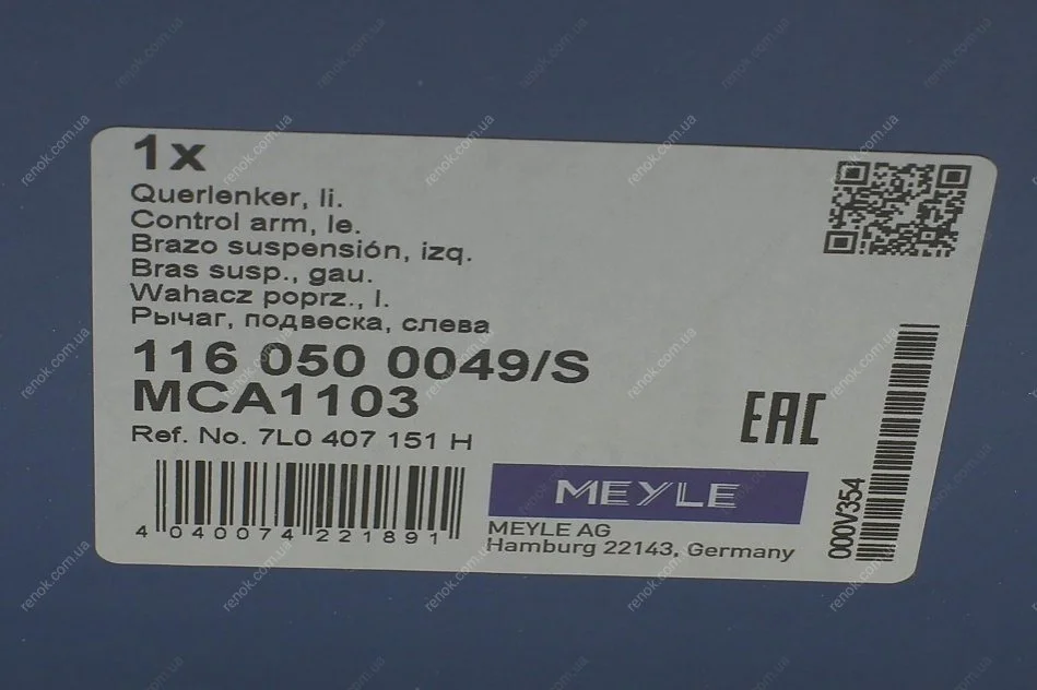 Рычаг подвески (передний/снизу) (L) Porsche Cayenne/VW Touareg 02-10 MEYLE 116 050 0049/S (95534101730, 95534101732, 95534101733)
