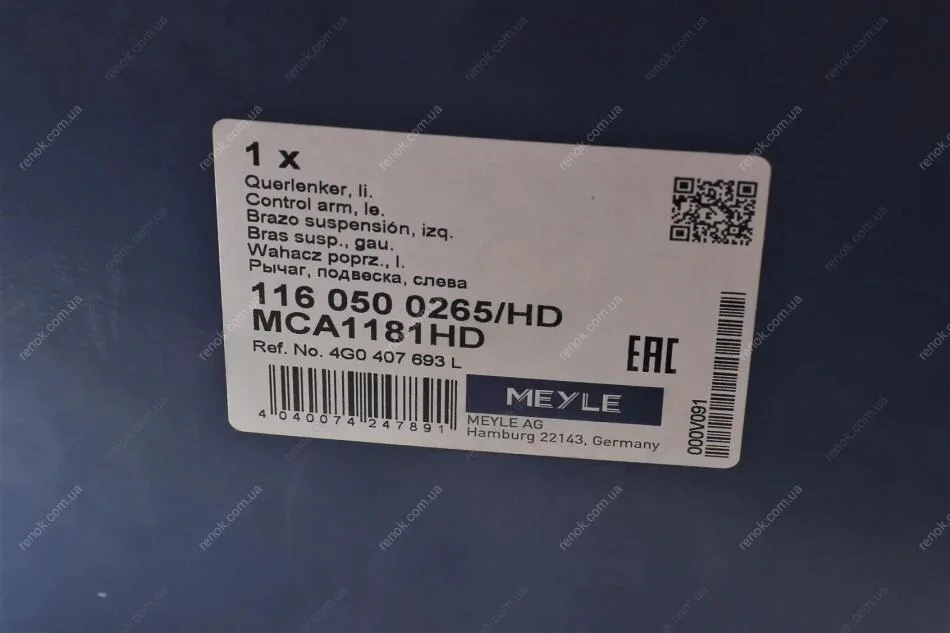 Рычаг подвески (передний) (L) Audi A6/A7 Sportback 11- MEYLE 116 050 0265/HD (4G0407693D, 4G0407693F, 4G0407693H)