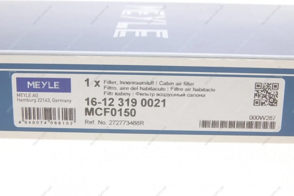 Фильтр салона Renault Megane III 08- MEYLE 16-12 319 0021 (272773488R, 272778970R, 272778970T)