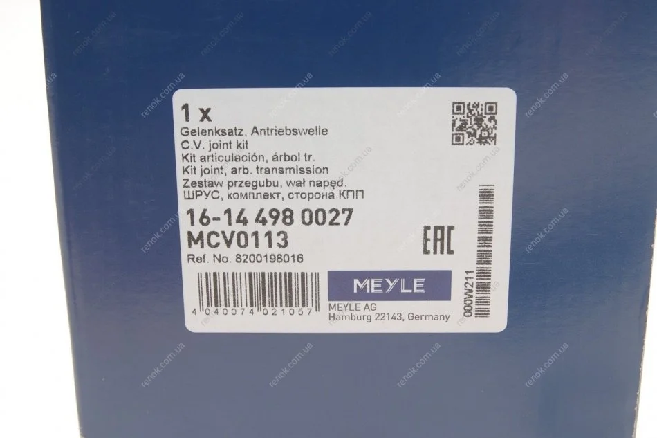 ШРКШ (наружный) Renault Megane II/Scenic II 1.9dCi/2.0 02- MEYLE 16-14 498 0027 (8200198016, 8200436366, 8200198015)