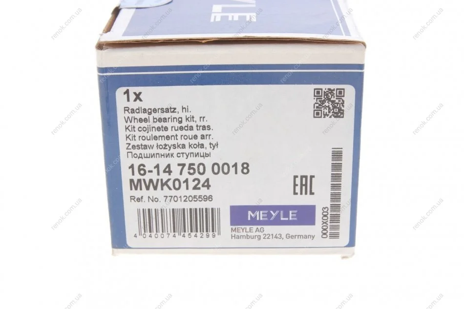 Подшипник ступицы (задней) Renault Kangoo 97- (25x55x43) MEYLE 16-14 750 0018 (7701205596, 7701463987, 7703090365)