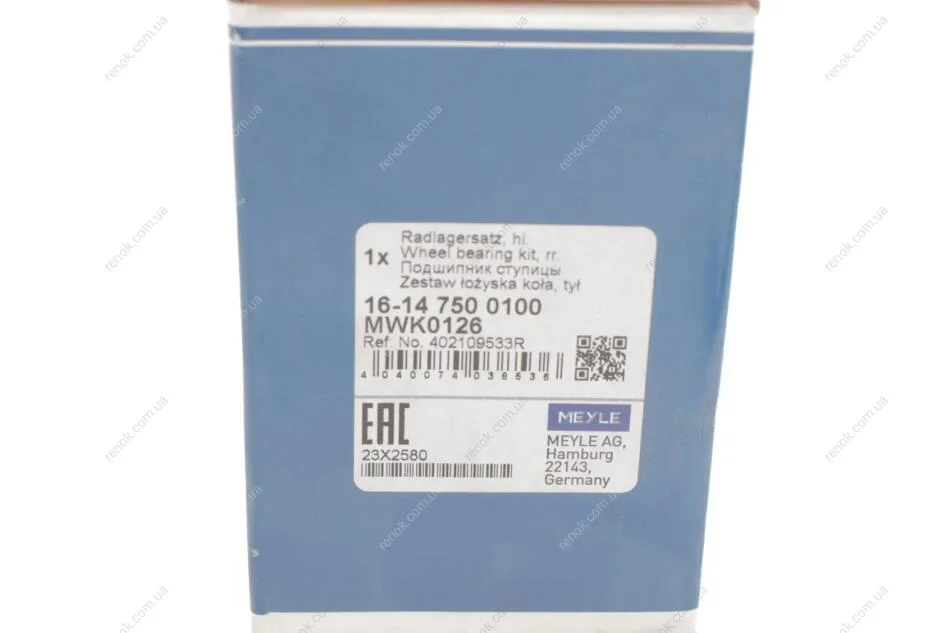 Подшипник ступицы (задней) Dacia Duster 4x4 1.5dCi/1.6 10- (42х77х39.5) MEYLE 16-14 750 0100 (402109533R)