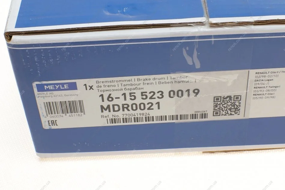 Барабан тормозной (задний) Dacia Logan/Sandero/Renault Clio 91- (180x52) MEYLE 16-15 523 0019 (7700419824, 7700752363, 7700783030)