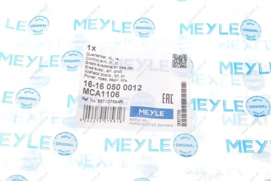 Рычаг подвески (задний) (R) Renault Duster 10- MEYLE 16-16 050 0012 (551107894R, 8200839107)