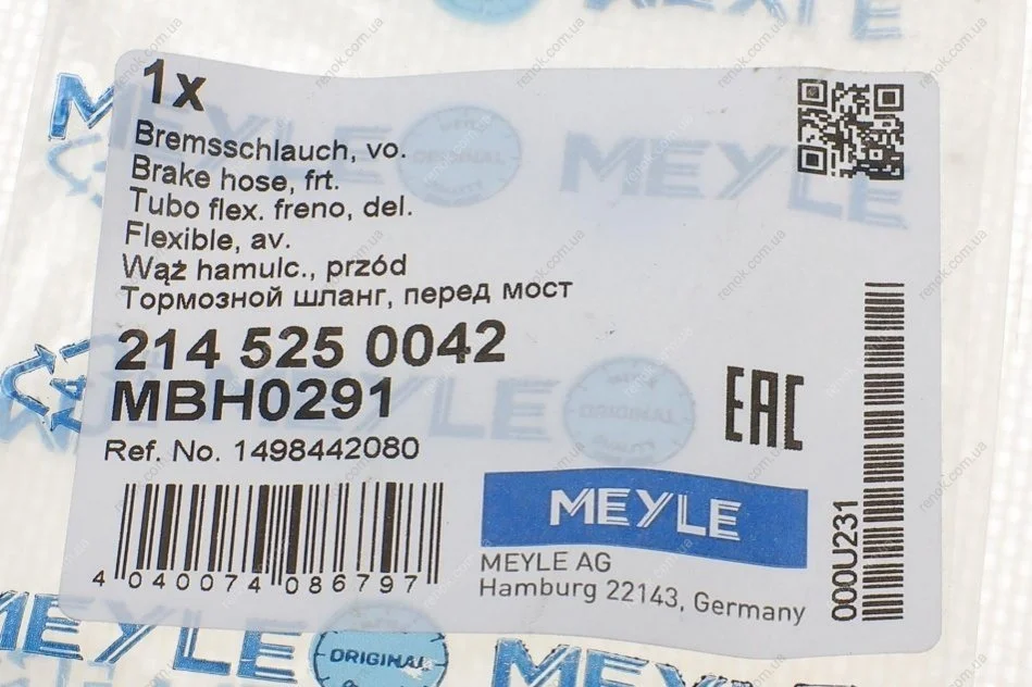 Шланг гальмівний MEYLE 214 525 0042 (1498442080)
