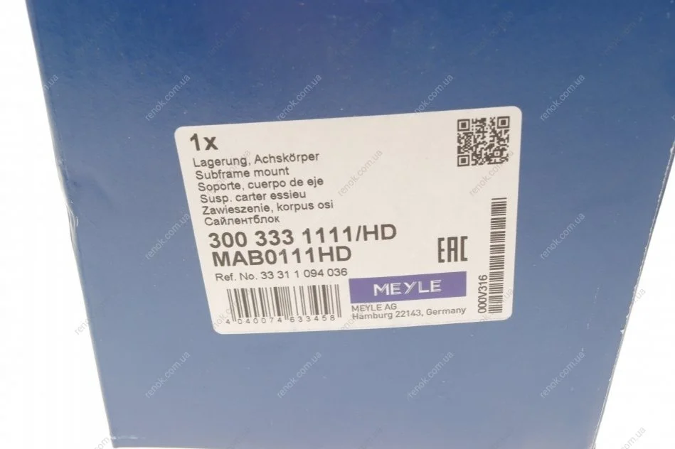 Сайлентблок балки (задней/спереди) BMW 5 (E39) 2.0-4.4 97-04 M57 D30 MEYLE 300 333 1111/HD (33311094036)