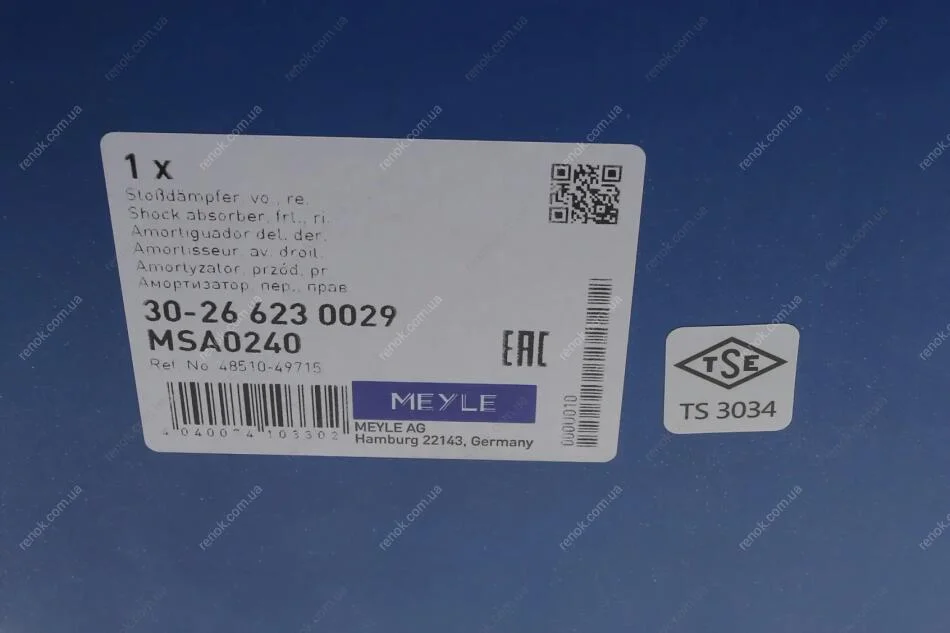 Амортизатор (передний) Toyota RAV4 00-05(R) MEYLE 30-26 623 0029 (4851042060, 4851042061, 4851042070)