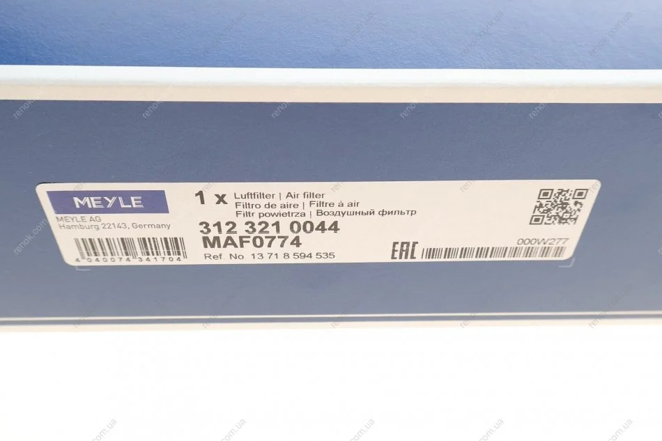 Фильтр воздушный BMW 3 (G20/G80/G28) 18- (B47/B57) MEYLE 312 321 0044