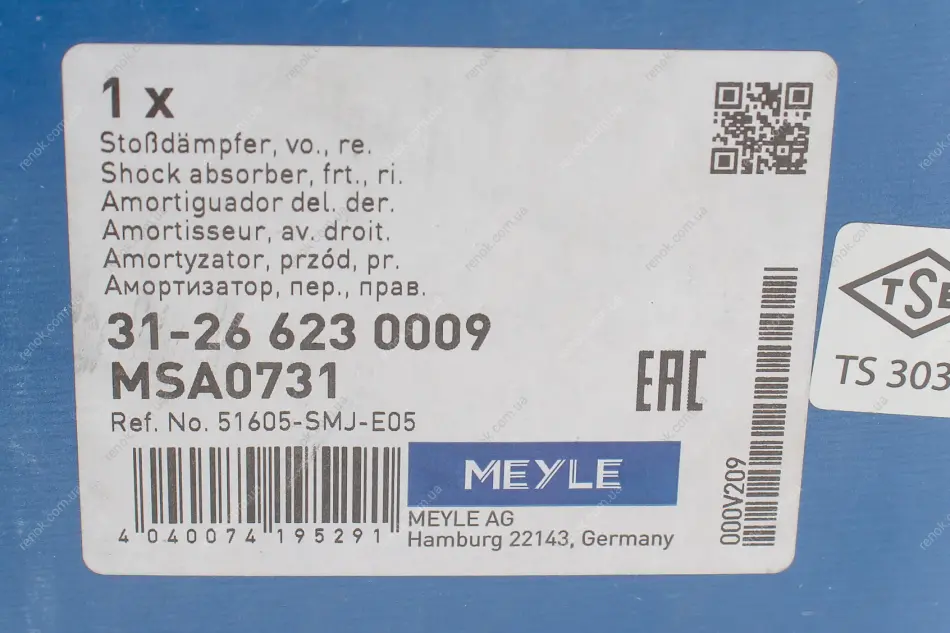 Амортизатор (передний) Honda Civic VIII 05-(R) MEYLE 31-26 623 0009