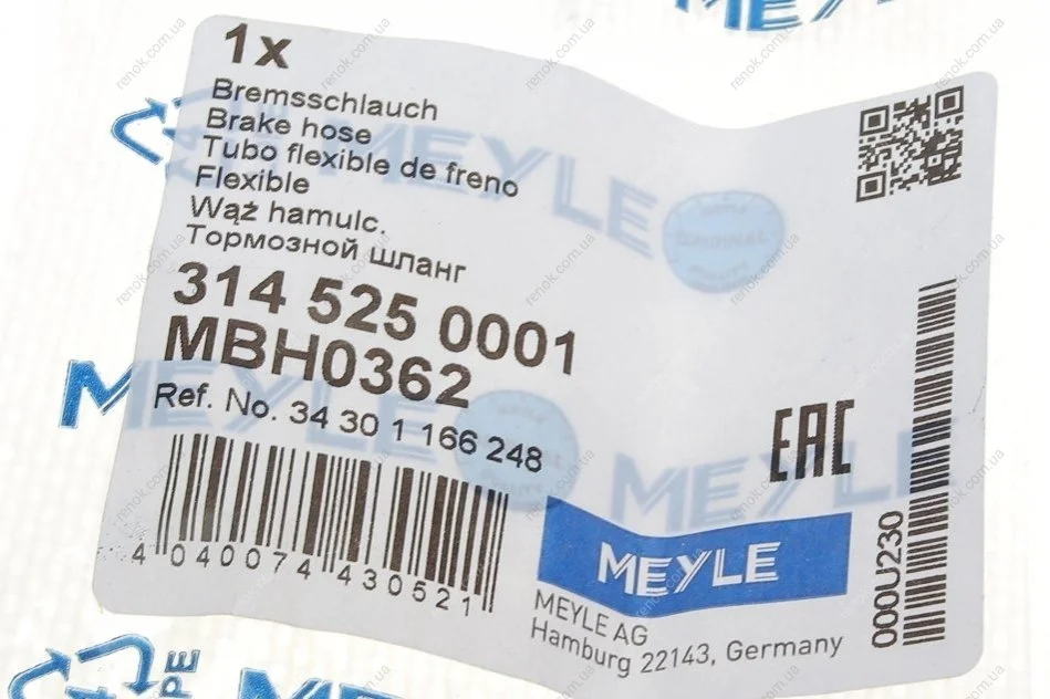 Шланг тормозной MEYLE 314 525 0001 (34301165075, 34301166248)